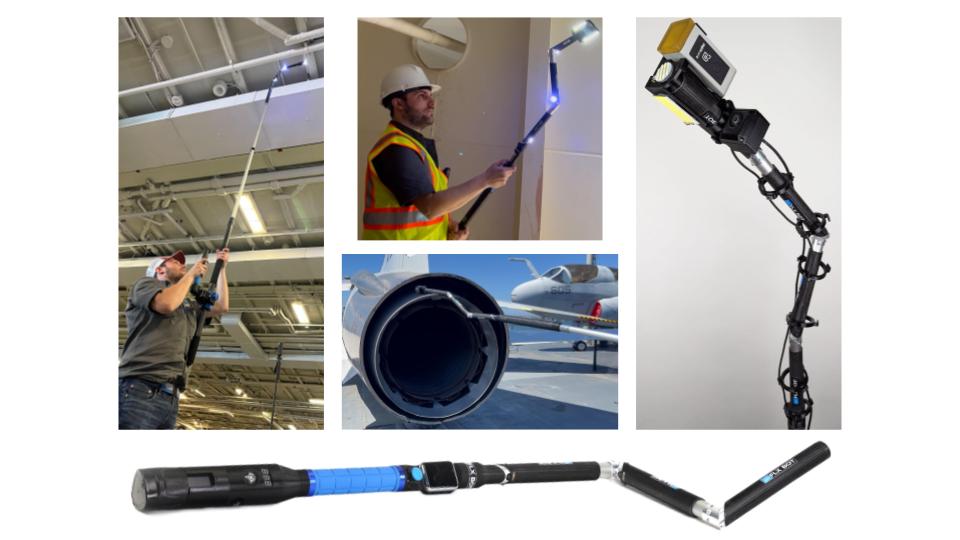 Solution: FLX BOT is a handheld robot designed for rapid deployment by operators in the field. It delivers “snake-like” maneuverability through modular links that articulate with 360° rotation and linear extension. At 1” in diameter, it can access tight spaces to perform non-destructive inspections (NDI) and maintenance without confined-space entry or teardowns. Its patented modular design allows rapid reconfiguration in length and function, while swappable end effectors (including cameras, sensors, and applicators) enable users to both detect faults and act in real time. Operated via handheld control or extension pole, the system requires minimal training and integrates into existing tool kits.