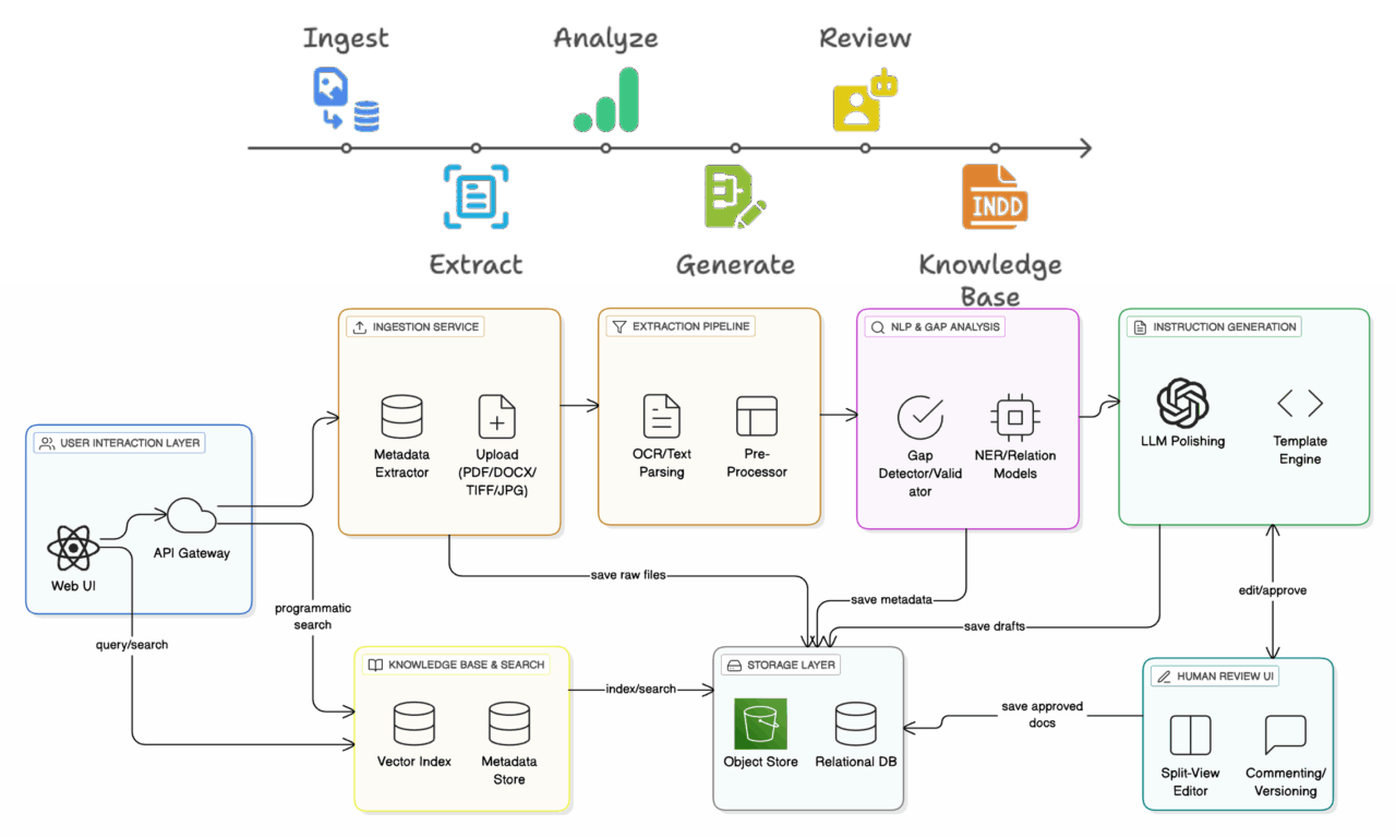 TechForgeAI™ automates the extraction, structuring, and drafting of technical work instructions from unstructured legacy documentation using cutting-edge AI and natural language processing. The solution generates consistent, accurate maintenance procedures while significantly reducing manual effort. By creating searchable, editable digital instructions, TechForgeAI™ accelerates document updates, supports compliance with maintenance standards, and preserves institutional knowledge in a usable digital form.