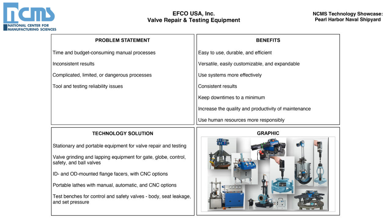 Established in 1978, EFCO has been a world-leading manufacturer of portable and stationary valve repair and testing equipment. Wherever fittings, valves, and pumps are used, EFCO equipment is also needed to maintain, repair, and test sealing surfaces, shut-off bodies, and housings. We are a family-run business with the philosophy of making our customers our partners – working together to create machining and testing solutions. Customer experience from the extensive use of our machines continuously contributes to our product development.