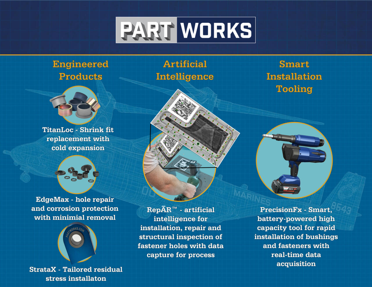 PartWorks LLC delivers field-deployable technologies for digital MRO, repair validation, and aircraft structural enhancement. Originally conceived to address the challenges of repairing structural fastener holes in hybrid materials subject to galvanic corrosion, our platform integrates point-of-action data acquisition, geometry capture, and component traceability to enable full repair lifecycle documentation and structural hole repair implementation.