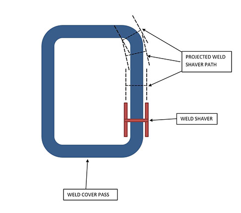 The US Navy is seeking a partner with the capabilities to develop a custom weld shaver tool to prevent over prepping. This custom tool will “shave” the weld down, leaving a consistent machined surface. This tool will be capable of providing the user the option to shave the weld down in multiple passes to ensure the consistency throughout the welded surface area. Users operating orientation of the shaving process will range from prone to overhead. (See included image)