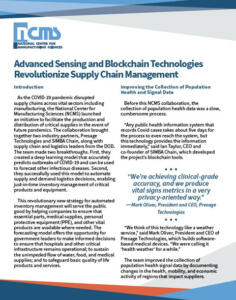 As the COVID-19 pandemic disrupted supply chains across vital sectors including manufacturing, the National Center for Manufacturing Sciences (NCMS) launched an initiative to facilitate the production and distribution of critical supplies in the event of future pandemics. The collaboration brought together two industry partners, Presage Technologies and SIMBA Chain, along with supply chain and logistics leaders from the DOD. The team made two breakthroughs. First, they created a deep learning model that accurately predicts outbreaks of COVID-19 and can be used to forecast other infectious diseases. Second, they successfully used this model to automate supply and demand logistics decisions, enabling just-in-time inventory management of critical products and equipment.
